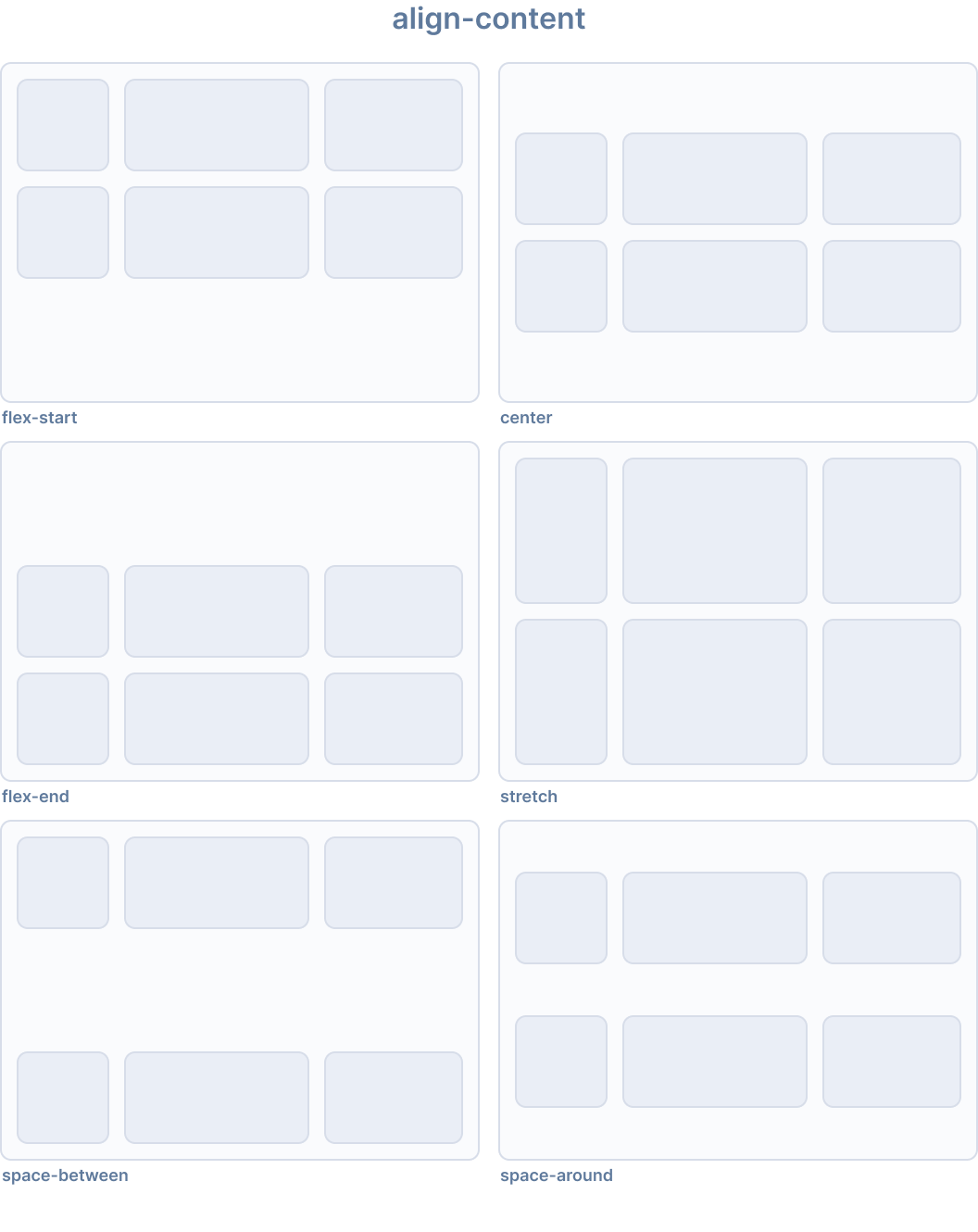 The align-content CSS property sets the distribution of space between and around content items along a flexbox's cross axis, or a grid or block-level element's block axis.