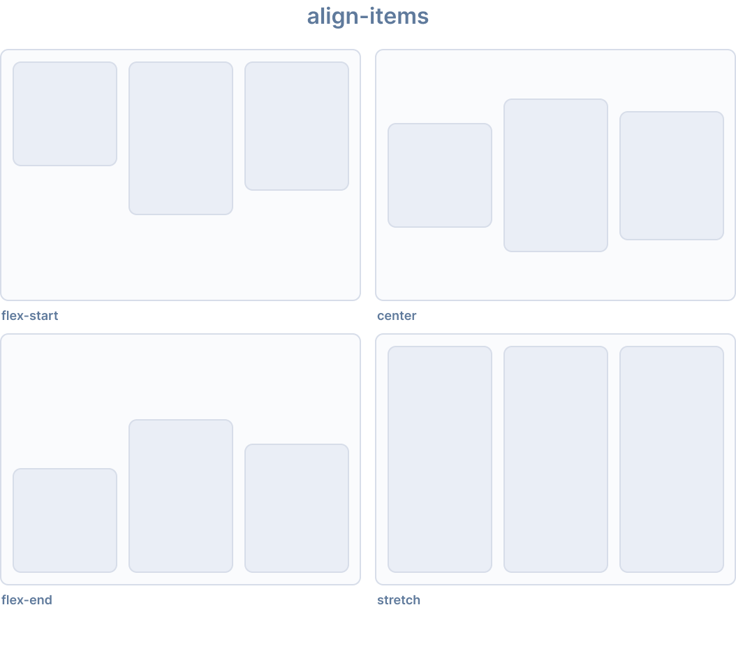 The align-items CSS property sets the align-self value on all direct children as a group. In flexbox, it controls the alignment of items on the cross axis. In grid layout, it controls the alignment of items on the block axis within their grid areas.